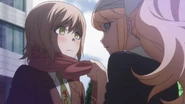 Mitarai and Kirigiri talking in the hallway.png