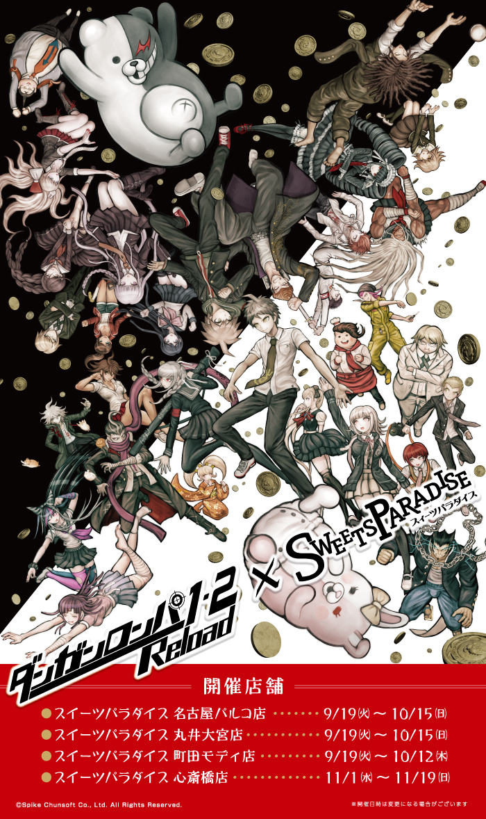 The Danganronpa 1 · 2 Reload × Sweets Paradise Collaboration (ダンガンロンパ 1・2 Reload×スイーツパラダイス) was a themed cafe collaboration effort between Spike Chunsoft and the cafe Sweets Paradise (スイーツパラダイス). It offered themed food, drinks and merchandise based around Danganronpa 1.2 Reload as the name implies.