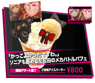 | 「かっこよかったですわ。」 Sonia Nevermind & Sōda Kazuichi's mech battle parfait (800yen) |