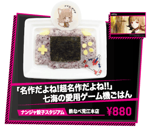 | 「名作だよね!超名作だよね!!」 Nanami Chiaki's favorite game console rice (880yen) |