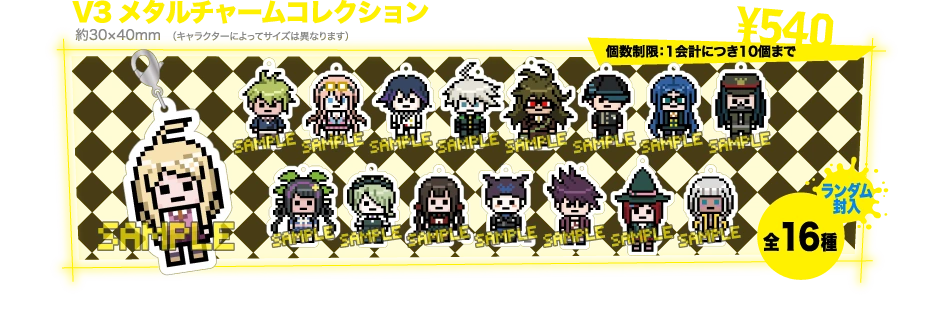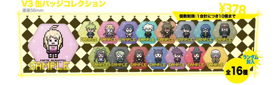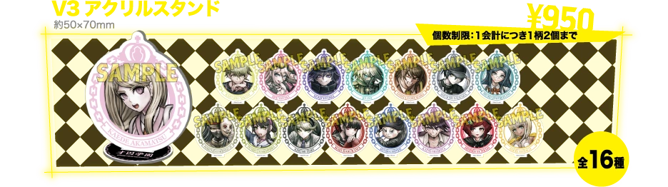 The Monomono Garapon V3 (モノモノガラポンV3) was a second roulette game available to play during the event from January 13th, 2017 onwards, in which players could win a number of physical prizes featuring Danganronpa 3 characters. It cost ¥400 per play. The prizes were as follows: