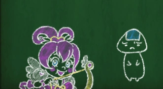 A drawing of Princess Piggles can be seen during the Warlockuma concept segment of the School Mode resource-gathering simulator featured in Danganronpa 1.2 Reload. |