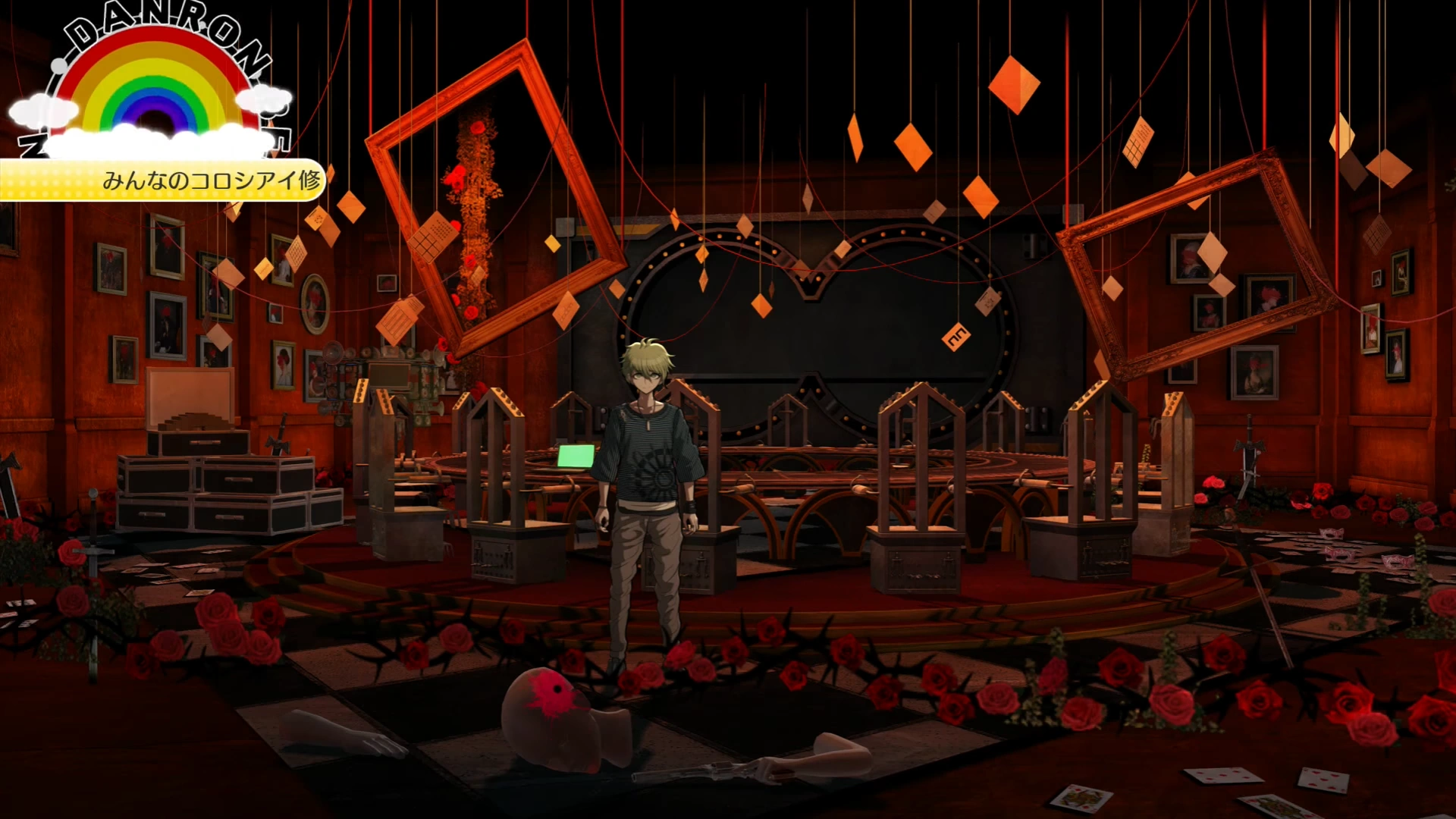 The Ultimate Survivor Lab (超高校級の生存者の研究室) is first found in Chapter 5, but remains locked until the investigation section of Chapter 6. This lab belongs to Rantaro Amami and is located on the fifth floor of the academy, near Shuichi's lab. His lab is large and red, roses decorating the span of the floor, with a large round table in the middle, several unconventional chairs surrounding it which resembles a Class Trials room, possibly referencing the fact he already was a participant in one killing game. A large two-part safe is in the back, where you have to open it in Chapter 6 with the clues left behind. The entire area is in disarray, obfuscating the purpose and meaning of his talent.