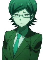 Daiki's features are slightly more stylized than his fellow Student Council members, with a squarish face, greenish-gray hair, and very dark brown eyes that seem to have little to no sclerae. He wears the standard uniform of Hope's Peak Academy. Daiki is shown to be worried about the killing game but still tries to calm everyone else down. He also seems to be level-headed and logical; in the dub, he first tried to see if the remaining Student Council members could make a run for it, believing the odds of them all dying to be slim. However, once Karen Kisaragi murders Ryōta Someya, Daiki joins the rest of the council in attempting to murder each other from a combination of panic and self-defense. | |
